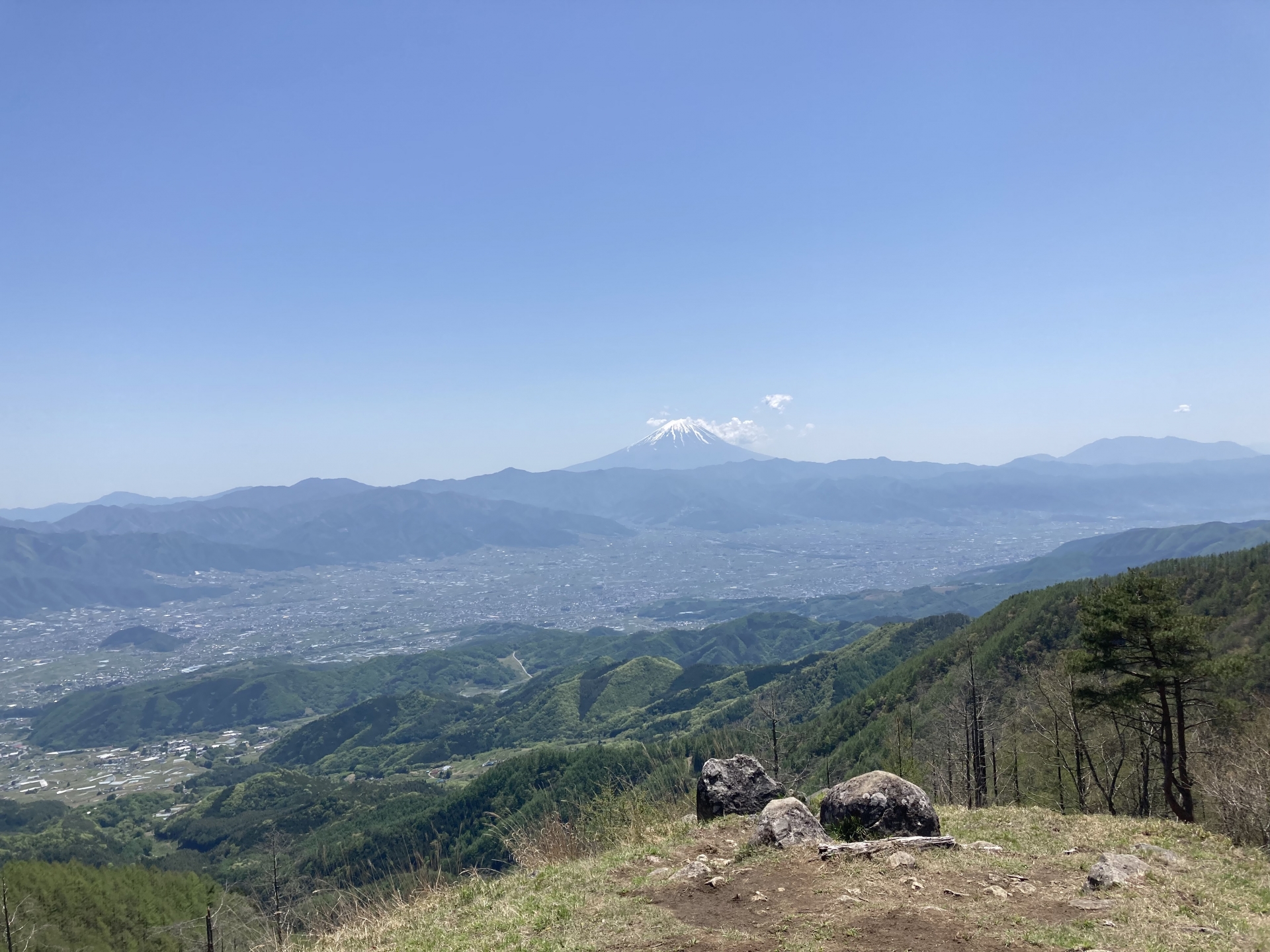 山の稜線からは甲府盆地のパノラマを一望。戦国時代の伝説が残り、地蔵様や幕岩・羅漢岩・薬石門などの奇岩も楽しめます。また、6月上旬から中旬にはレンゲツツジが見ごろを迎えます。