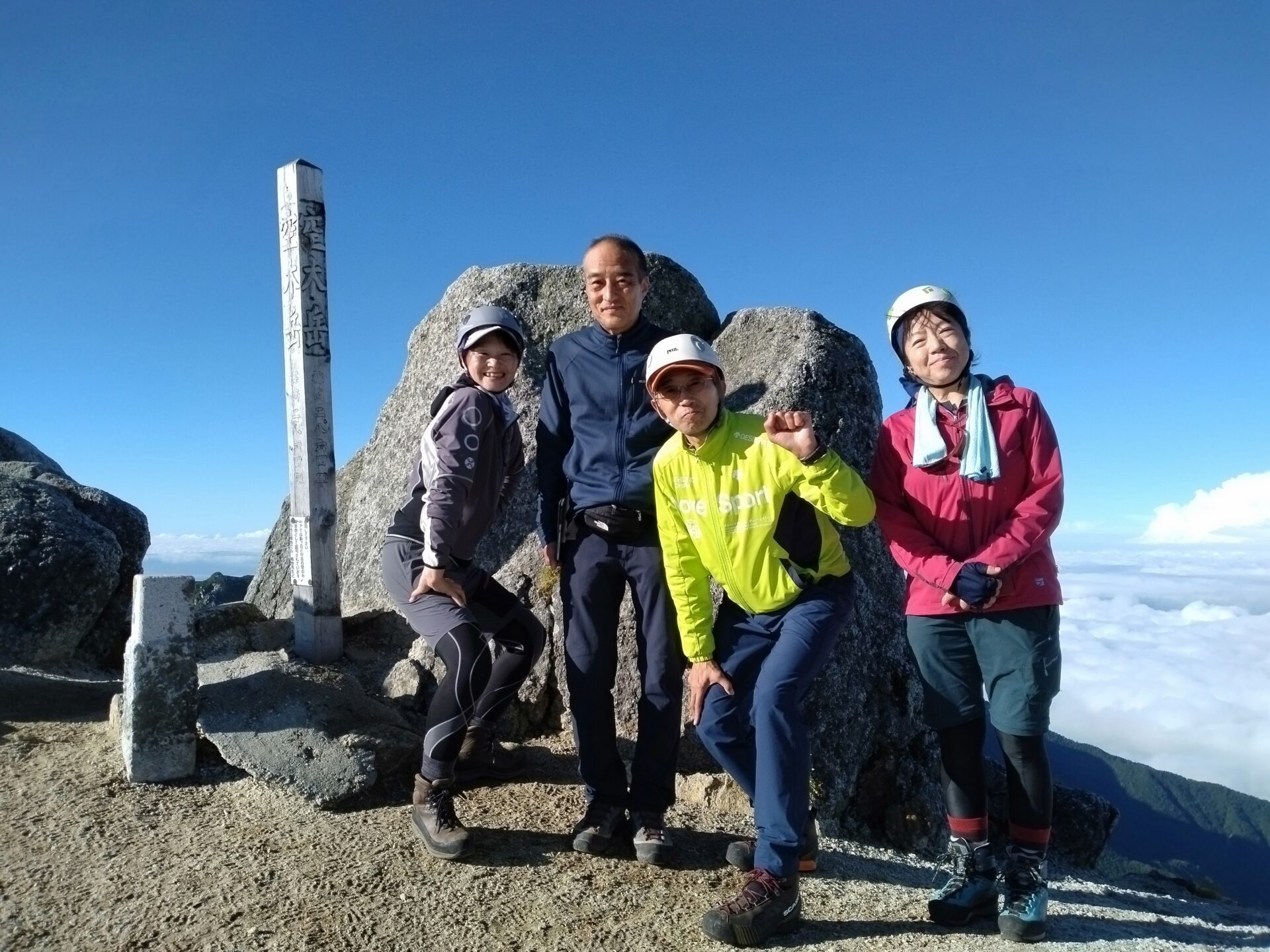 中央アルプスは天竜川、木曽川に挟まれた南北90km、東西20kmの日本最大の花崗岩の山脈です。空木岳は、ハイマツの緑と花崗岩の白のコントラストが青空に映えます。