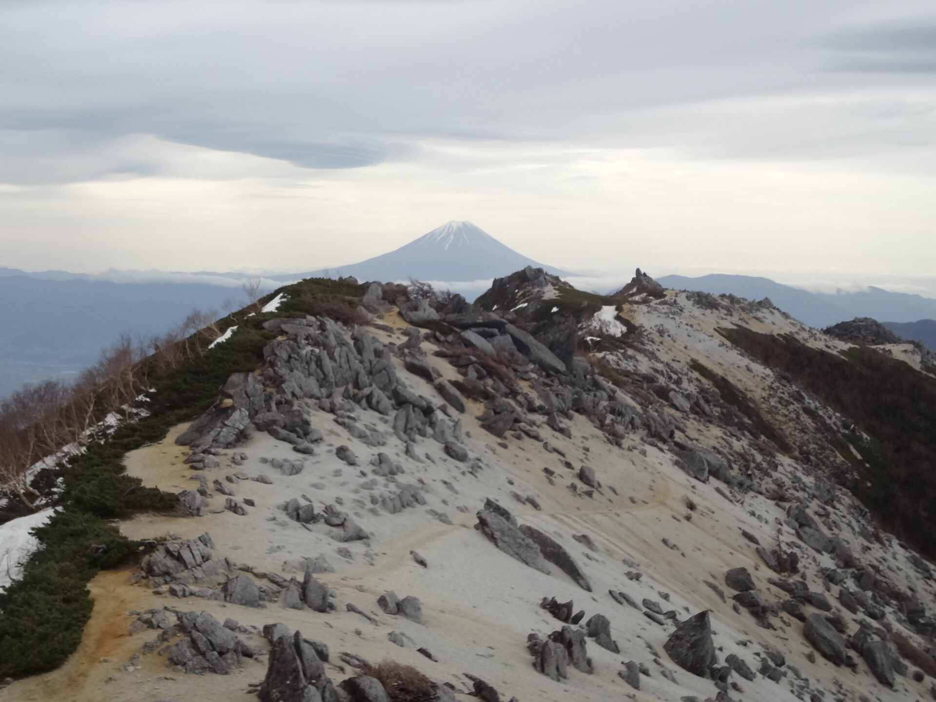 花崗岩とハイマツ・ダケカンバ織りなす奇岩、白砂青松の尾根を白根三山、仙丈、甲斐駒と続く展望を楽しみながら、山中一泊、薬師岳、最高峰観音岳、地蔵岳と鳳凰三山を縦走します。